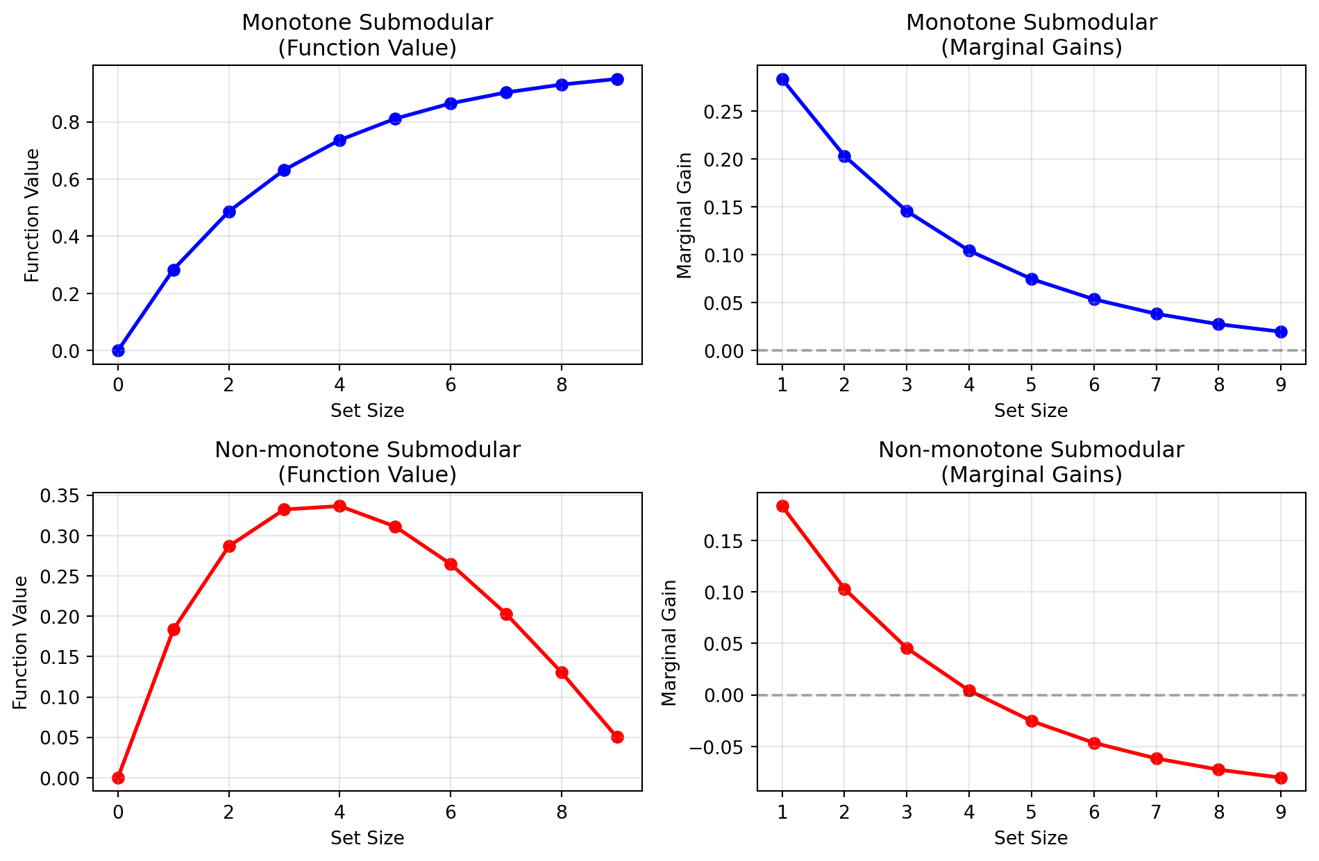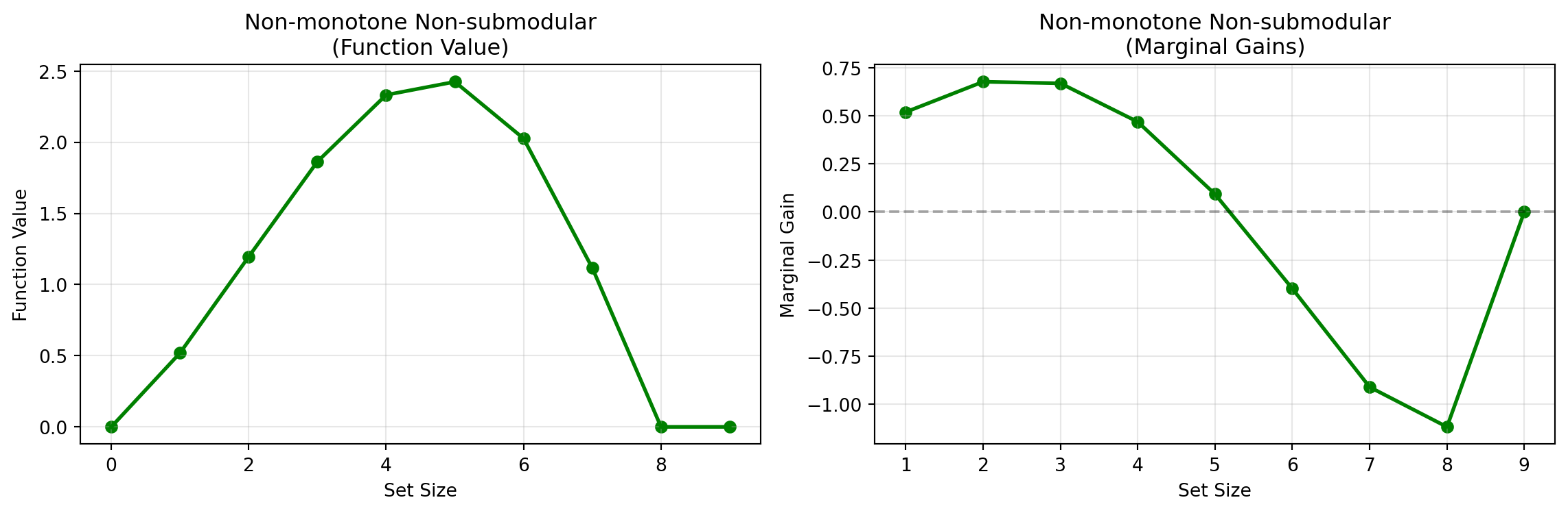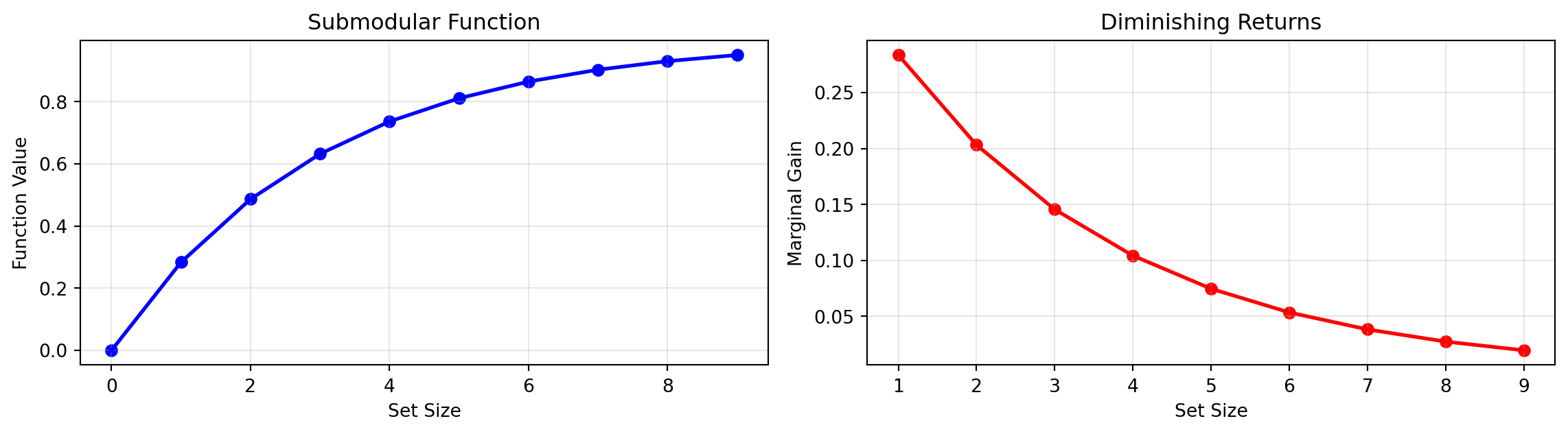 Right: Marginal gain decreases with set size