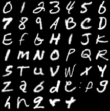 EMNIST is a dataset of 28x28 grayscale images of handwritten digits and letters.
